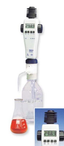 TITREX 2000數字型滴定器,符合ISO 9001認證,專利設計,不漏液也不殘留,充分利用每一滴溶液,更經濟更環保,操作容易,特殊機械閥門裝置,可達到分注精準的完美要求,容量範圍0~50 ml,智慧型功能,按〝DOS〞鍵即可輕鬆完成工作,提供〝O/CAL〞鍵,可於水溫20℃時校正其精準度,為實驗室必備之最佳選擇。